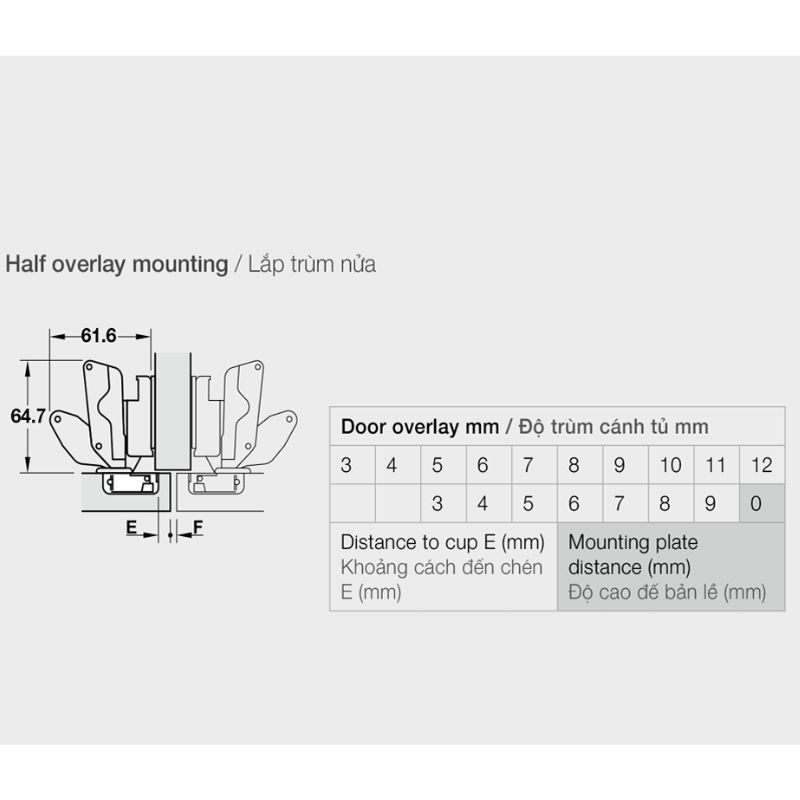 Bản Lề Trùm Nửa Metalla SM 165º Hafele 315.28.751