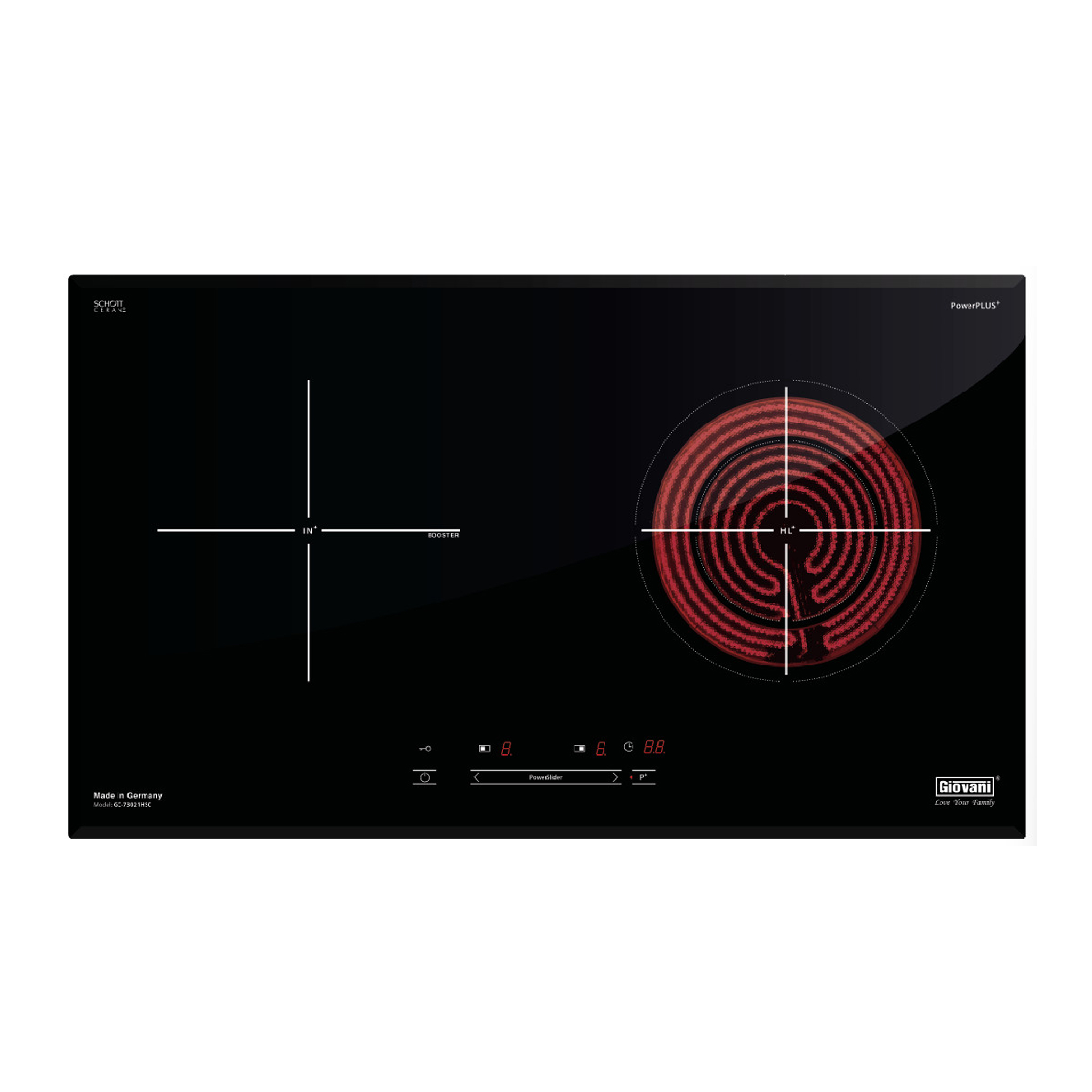 - Mặt kính: SCHOTT Ceran Germany, vát 4 cạnh sang trọng
