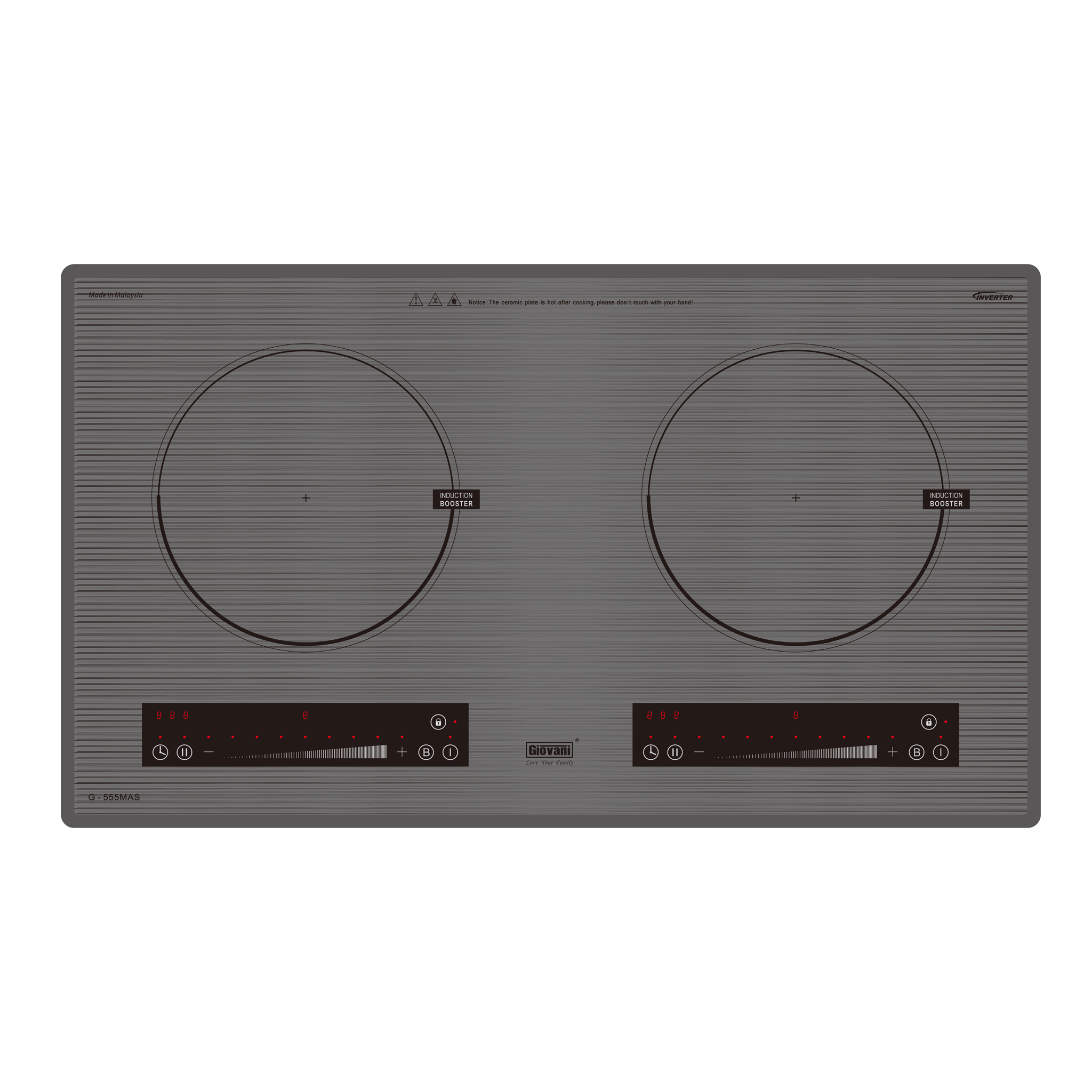 Bếp từ đôi G-555 MAS là dòng bếp hiện đại với thiết kế sang trọng, mặt kính Ceramic vát 4 cạnh kết hợp viền hợp kim nhôm cao cấp. Sản phẩm sử dụng linh kiện Siemens cùng công nghệ Inverter giúp tiết kiệm điện năng, mang lại hiệu suất nấu ổn định và độ bền cao.