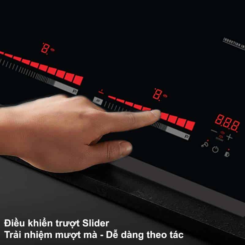 - Điều khiển cảm ứng Slider thông minh: Cho phép thao tác mượt mà với 9 mức công suất và chế độ booster, dễ dàng điều chỉnh theo từng món ăn.