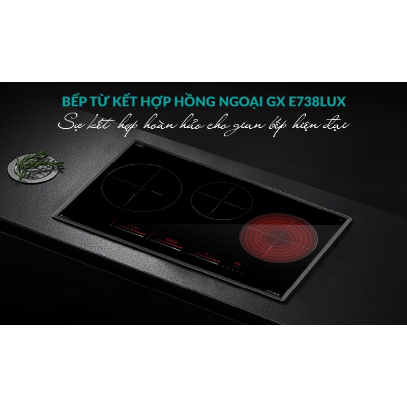 Bếp từ kết hợp hồng ngoại GX E738LUX là sản phẩm cao cấp với thiết kế tinh tế, tích hợp công nghệ hiện đại, đáp ứng nhu cầu nấu nướng đa dạng của mọi gia đình. Bếp sở hữu 3 vùng nấu độc lập, gồm 2 vùng từ và 1 vùng hồng ngoại, giúp tối ưu hóa việc nấu nướng, tiết kiệm thời gian và năng lượng.