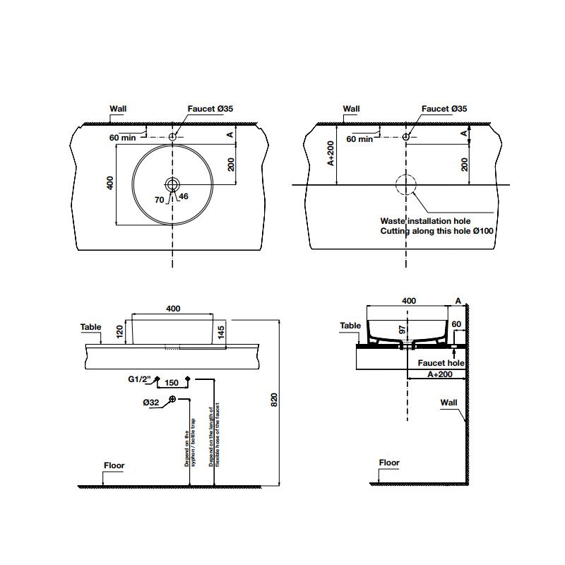 Chậu lavabo đặt bàn Sapporo Hafele 588.79.060