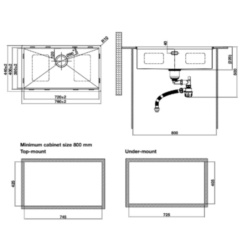 Chậu rửa bát Hafele WS R10 HS25-SSN1S-7644 567.24.487 Đen