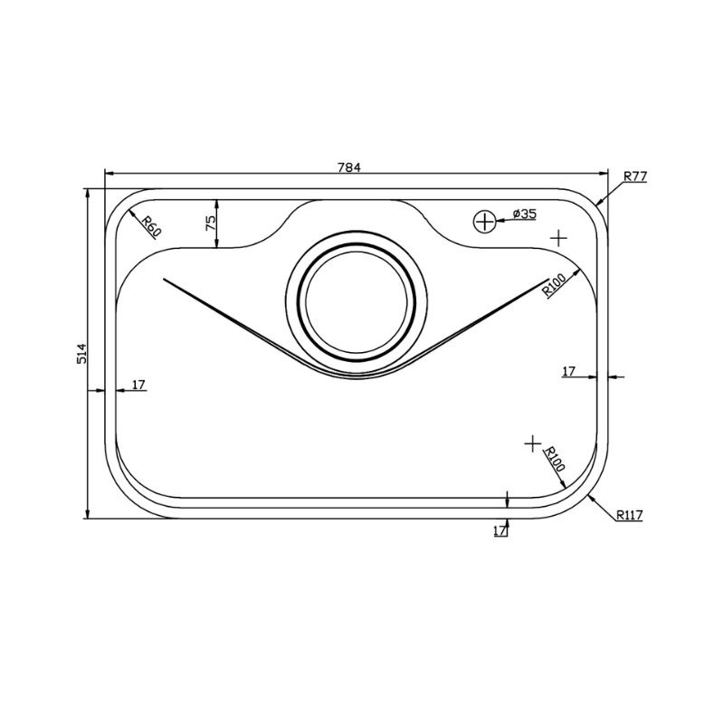 | Kích thước chậu (D x R x C) | 784 x 514 x 220 mm |