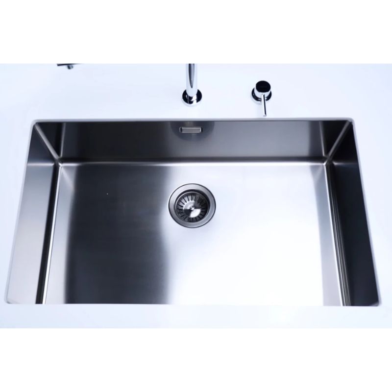 - Chi tiết tối ưu cho trải nghiệm sử dụng: Góc bo R12 giúp hạn chế bám bẩn và tăng độ an toàn khi thao tác. Lòng chậu sâu 200 mm chứa được nhiều bát đĩa, giảm bắn nước ra ngoài. Độ dày inox 1.0 mm mang lại kết cấu chắc chắn, giảm rung và tiếng ồn, nâng cao độ bền lâu dài.