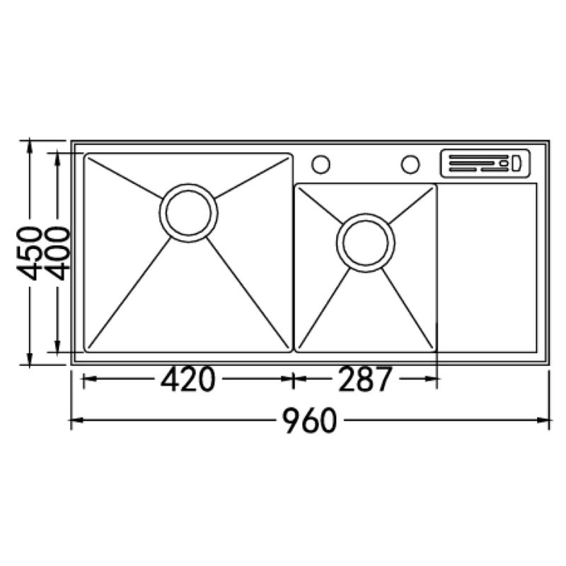 - Hệ thống thoát nước nhanh với bát rác 3 lớp: Hai bát rác kích thước lớn cùng cấu tạo 3 lớp lọc giữ lại cặn bẩn, rác thô và ngăn mùi hiệu quả. Thiết kế này tăng tốc độ thoát nước, hạn chế tắc nghẽn và giảm chi phí vệ sinh đường ống.