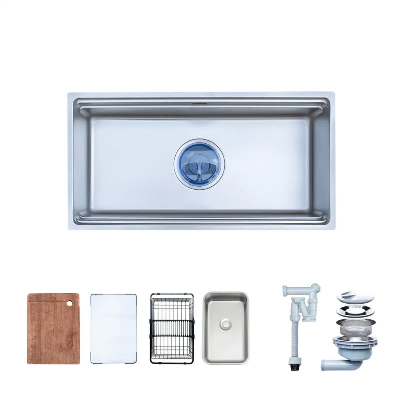 - Bộ phụ kiện đi kèm đầy đủ: Bao gồm thớt gỗ, thớt inox, khay LK và rổ JL, đáp ứng trọn vẹn nhu cầu sơ chế và vệ sinh trong gian bếp hằng ngày.