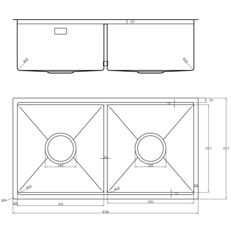 - Thiết kế 2 hố cân đối – Tiện lợi mọi thao tác: Hai hố rửa cân xứng giúp phân chia khu vực rửa bát bẩn và sơ chế thực phẩm, cho phép xử lý nhiều công việc cùng lúc, tối ưu hóa việc chuẩn bị món ăn, giảm bắn nước và tiết kiệm nước hiệu quả.