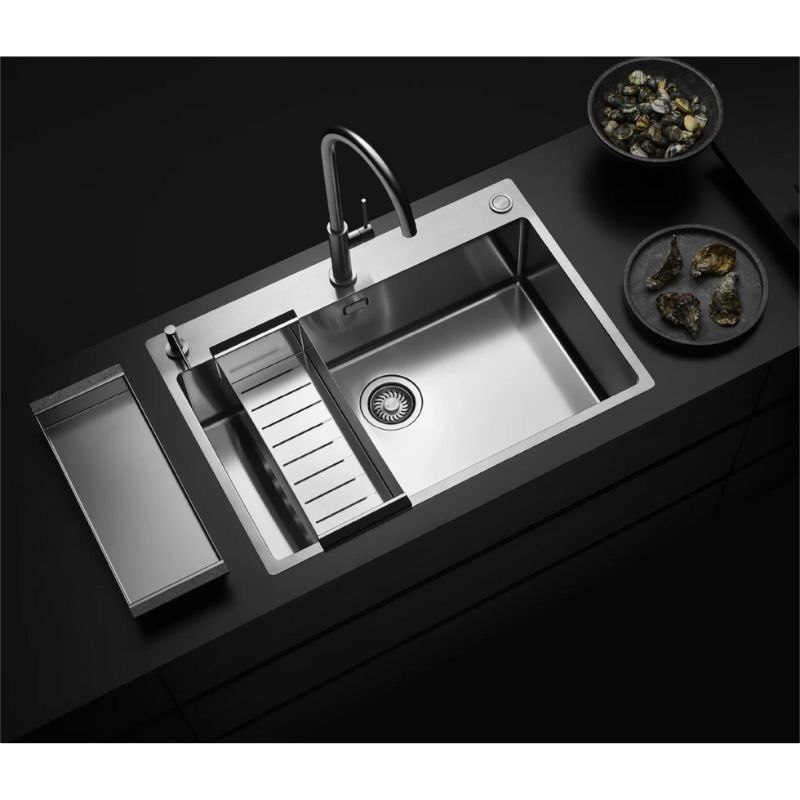 - Bát rác inox 304 kèm lọc nhấc chạm thông minh: Thiết kế bát rác bằng inox 304 kết hợp lưới lọc nhấc chạm tiện lợi, cho phép vệ sinh nhanh gọn mà không cần tiếp xúc trực tiếp với rác thải. Gioăng cao su chịu nhiệt giúp chống rò rỉ nước hiệu quả.