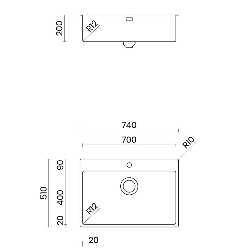 - Góc bo R12 kết hợp lòng chậu sâu 200mm: Thiết kế góc bo R12 giúp việc vệ sinh thuận tiện, không tích tụ cặn bẩn. Độ sâu 200mm tăng dung tích sử dụng, hỗ trợ rửa vật dụng lớn và hạn chế bắn nước ra ngoài.
