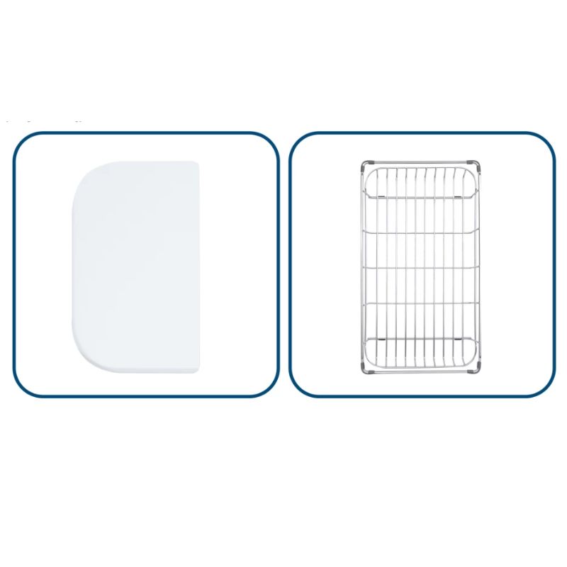 - Phụ kiện đi kèm tiện lợi: Sản phẩm đi kèm thớt nhựa và rổ inox, hỗ trợ hiệu quả cho quá trình sơ chế, rửa và úp dụng cụ trong bếp hằng ngày.