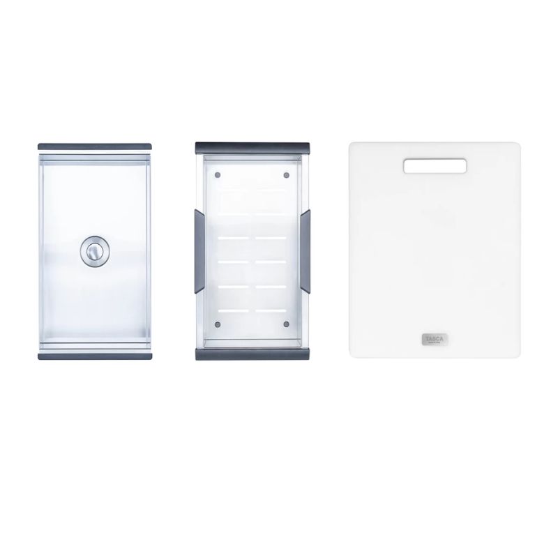- Phụ kiện đồng bộ chuẩn Ý: Đi kèm thớt nhựa, rổ VY và khay VY sản xuất tại Ý, tương thích hoàn hảo với hệ gờ Slide, hỗ trợ phân loại và sơ chế thực phẩm thuận tiện hơn.
