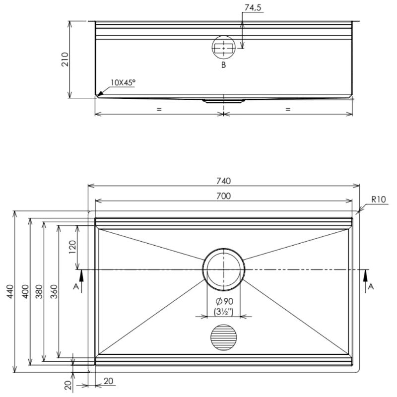 - Thiết kế tối giản, hiện đại: Kiểu dáng chữ nhật với đường nét thẳng kết hợp các góc bo R10 mềm mại tạo cảm giác thanh thoát, dễ phối hợp với nhiều phong cách nội thất bếp. Lỗ thoát tràn và bát rác đúc liền giúp bề mặt phẳng, thuận tiện vệ sinh và tăng tính thẩm mỹ tổng thể.