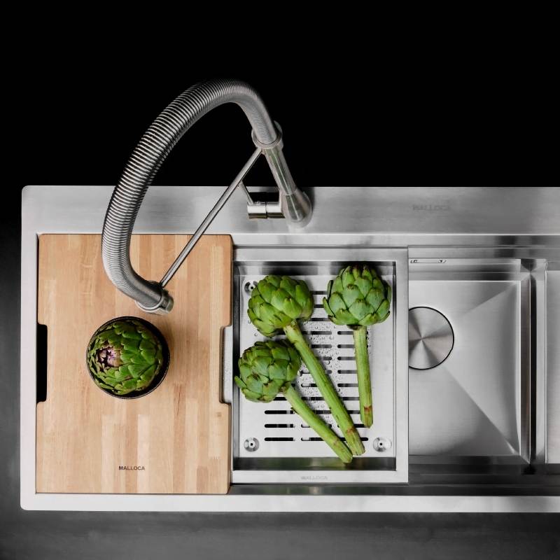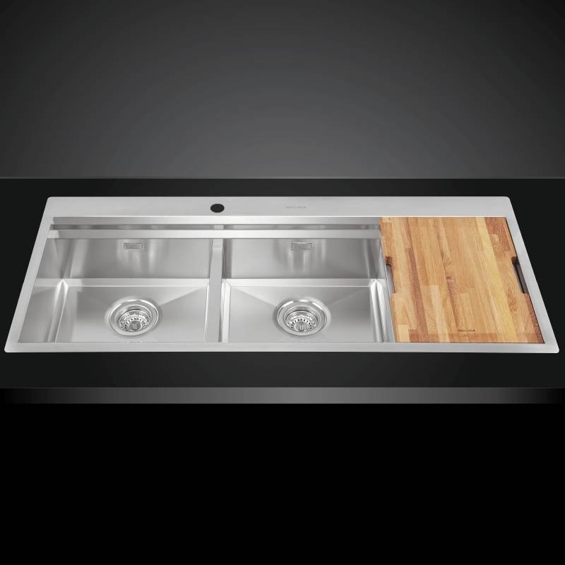 - Phụ kiện cao cấp đi kèm: Trang bị sẵn rổ inox và thớt gỗ giúp dễ dàng sơ chế thực phẩm hoặc úp chén đĩa ngay tại chậu.