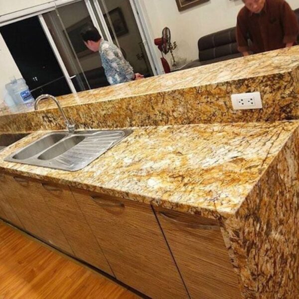 - Làm bàn đảo: Đá Birch Gold cũng rất phù hợp để làm bàn đảo bếp, tạo điểm nhấn cho không gian nấu nướng.