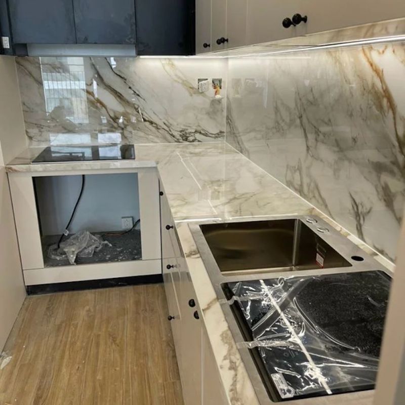 - Mặt Bàn Bếp: Đây là nơi chịu tác dụng rất nhiều của lực cũng như nhiệt khi đun nấu nên đòi hỏi đá ốp phải có độ cứng cao, khả năng chống thấm, chống ám ố và chịu nhiệt tốt.