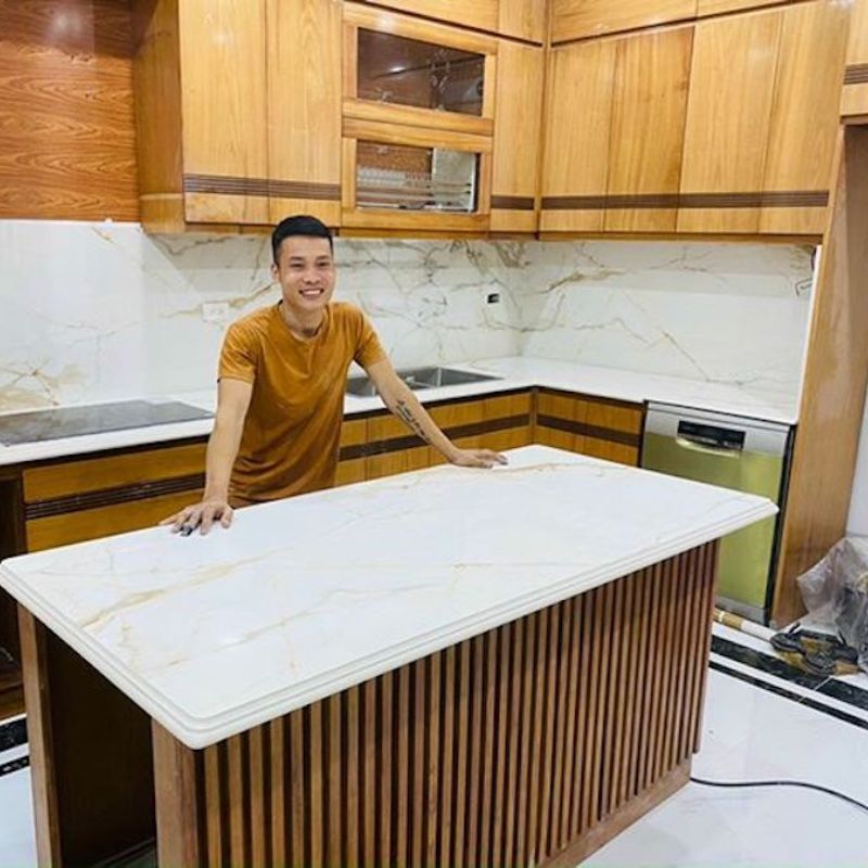 - Mặt Bàn Bếp: Đây là nơi chịu tác dụng rất nhiều của lực cũng như nhiệt khi đun nấu nên đòi hỏi đá ốp phải có độ cứng cao, khả năng chống thấm, chống ám ố và chịu nhiệt tốt.