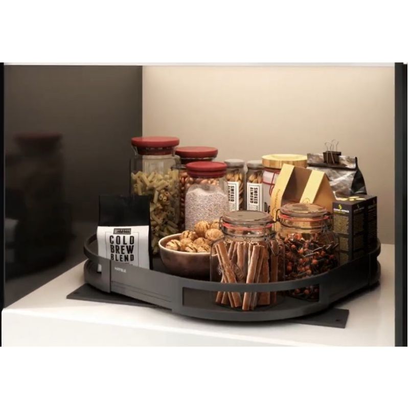 - Cơ chế xoay tròn 360° vận hành mượt mà, cho phép tiếp cận nhanh chóng các vật dụng ở mọi vị trí trong khoang tủ.