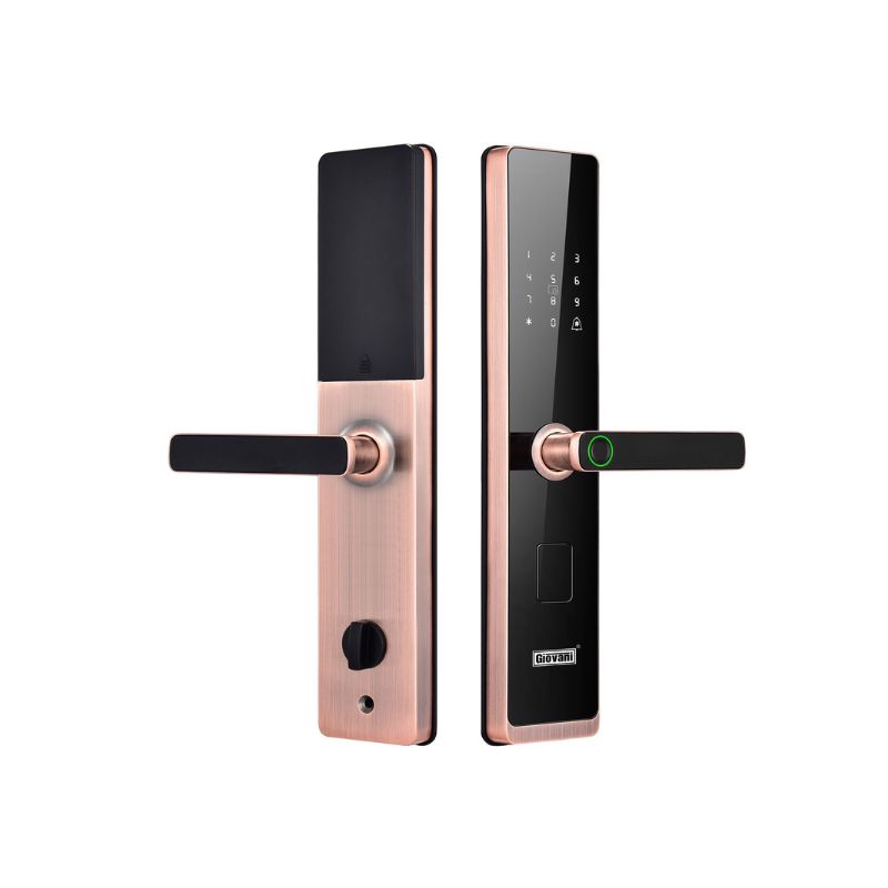 Khóa cửa thông minh vân tay hợp kim nhôm màu đồng (App Bluetooth) mang phong cách sang trọng, tinh tế, phù hợp với nhiều không gian như căn hộ, nhà phố và biệt thự. Sản phẩm tích hợp công nghệ mở khóa hiện đại cùng kết nối Bluetooth tiện lợi, giúp người dùng dễ dàng kiểm soát ra vào một cách an toàn và nhanh chóng.