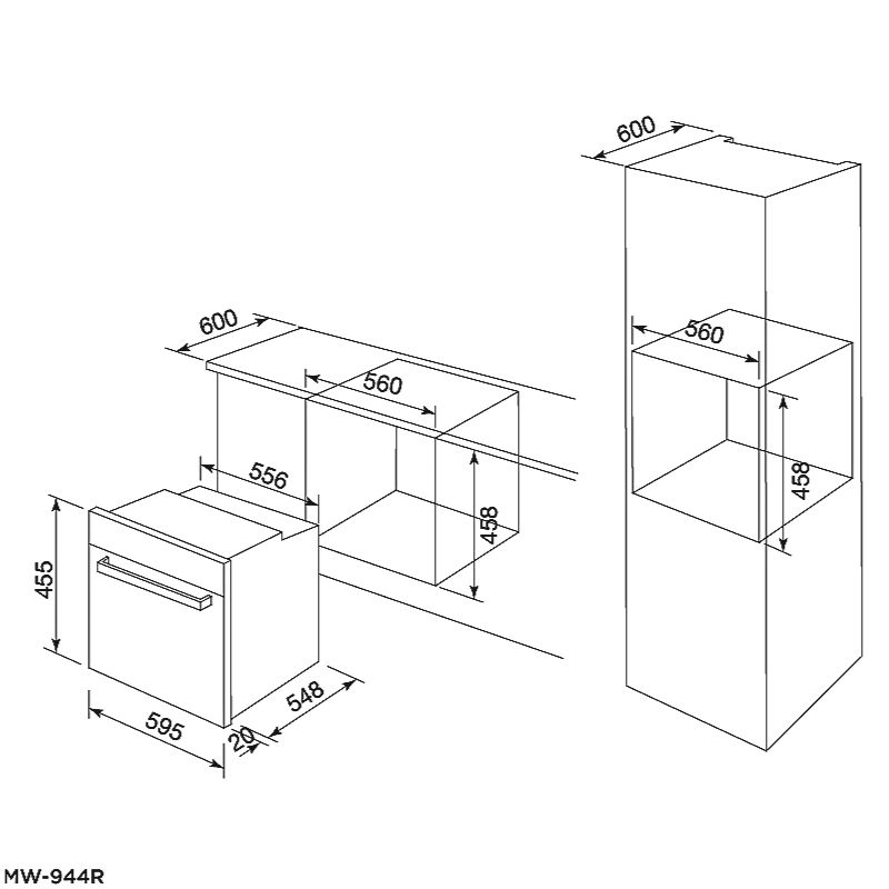 Kích thước: W595 x D568 x H455mm