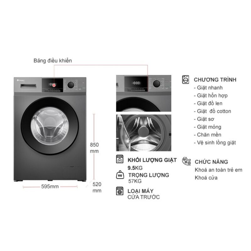 Máy Giặt Casper Inverter 9.5 Kg WF-95VG5 cửa trước