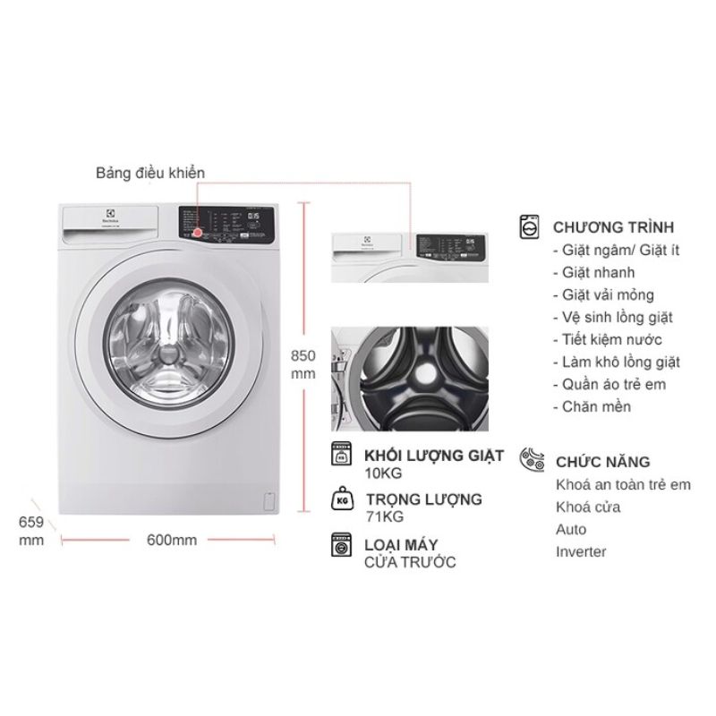 Máy Giặt Electrolux Inverter 10 Kg EWF1025DQWB cửa trước