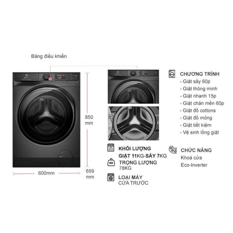 Máy Giặt Sấy Electrolux Inverter Giặt 11 Kg – Sấy 7 Kg EWW1143R7SC