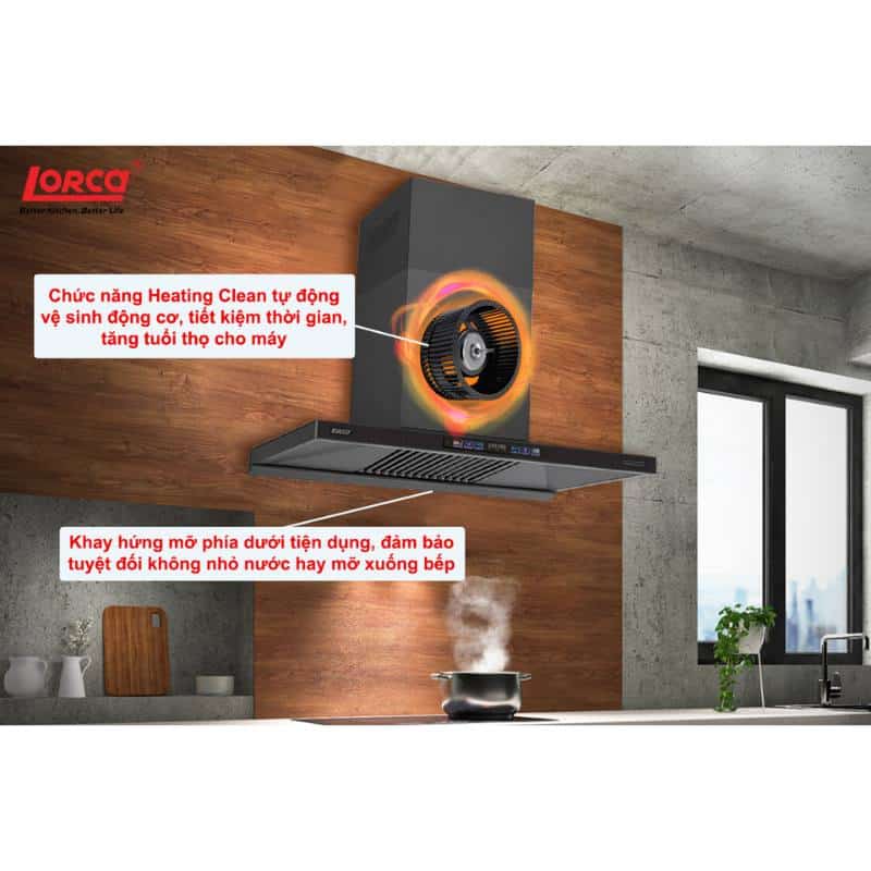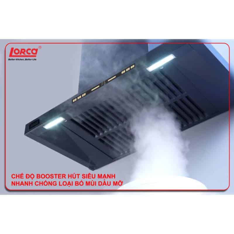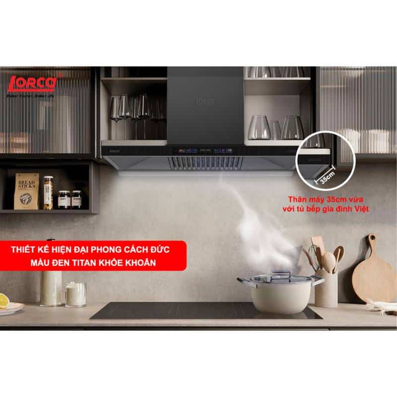 Máy hút mùi LORCA LC 3619 70cm sở hữu thiết kế chuẩn châu Âu với màu đen titan sang trọng, vừa nâng tầm thẩm mỹ cho gian bếp, vừa đảm bảo hiệu suất hút mùi mạnh mẽ. Sản phẩm trang bị công nghệ cảm ứng LCD kết hợp vẫy tay thông minh, vận hành êm ái với độ ồn chỉ 48 dBA, mang lại trải nghiệm tiện nghi và hiện đại cho mọi gia đình.