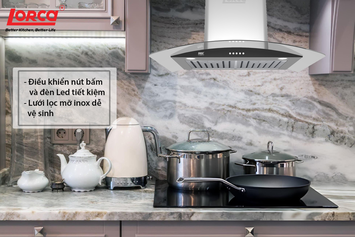 Máy hút mùi LORCA TA 2001PH-70CM là dòng máy hút mùi kính cong hiện đại, được thiết kế tối ưu cho không gian bếp vừa và nhỏ. Với công suất hút mạnh mẽ, hệ thống lọc hiệu quả cùng kiểu dáng sang trọng, sản phẩm giúp loại bỏ nhanh chóng khói, mùi thức ăn và dầu mỡ, mang lại không gian bếp luôn sạch thoáng và dễ chịu.