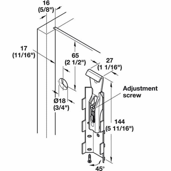 Thông số kĩ thuật của phụ kiện bas treo tủ lắp vít Hafele 290.21.930