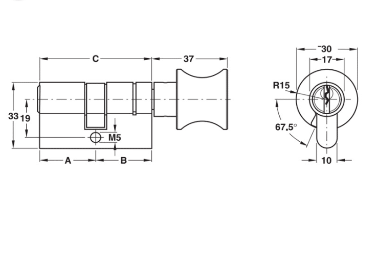 Thông số kĩ thuật của ruột khóa 1 đầu chìa, 1 đầu vặn đầu Hafele 916.01.068