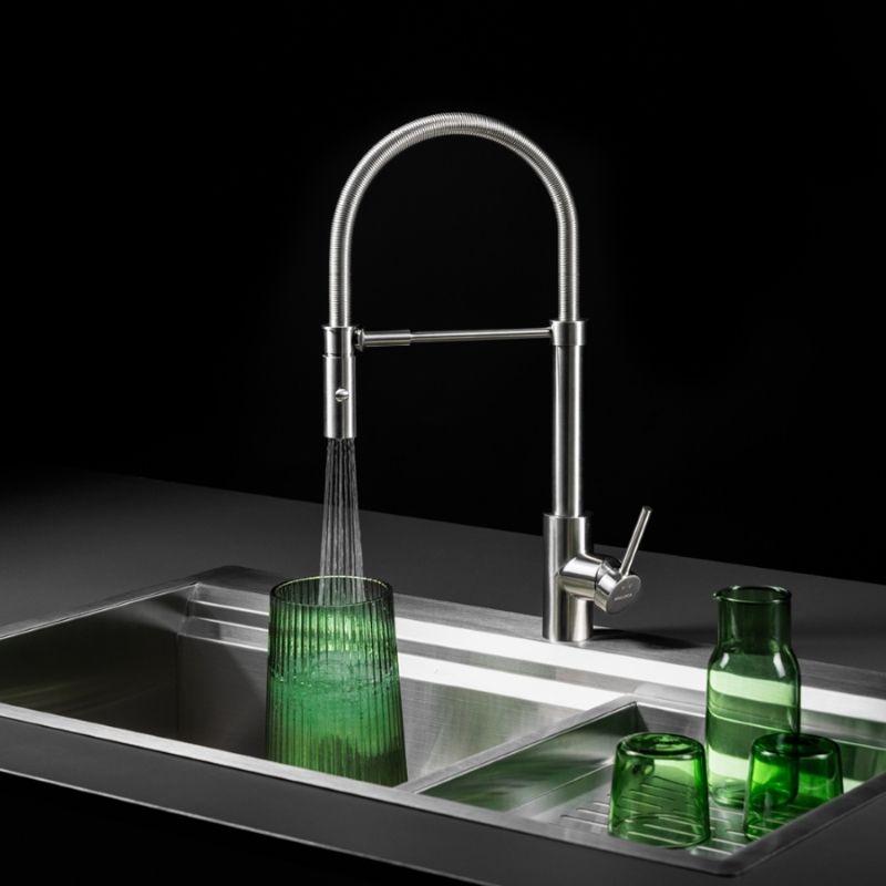 - Thiết kế dây lò xo hiện đại: Kiểu dáng mạnh mẽ, linh hoạt khi sử dụng và tạo điểm nhấn nổi bật cho khu vực chậu rửa.